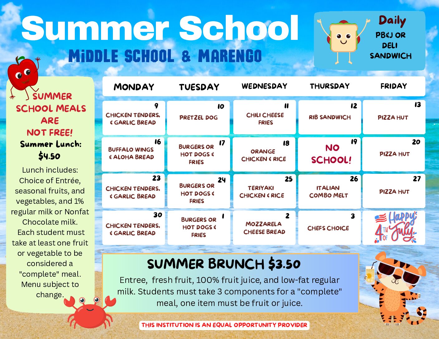 - Middle School students will be offered Brunch from 10:40am-11:00am and lunch at 12:00pm. A la carte smart snack items will be offered at an additional charge.