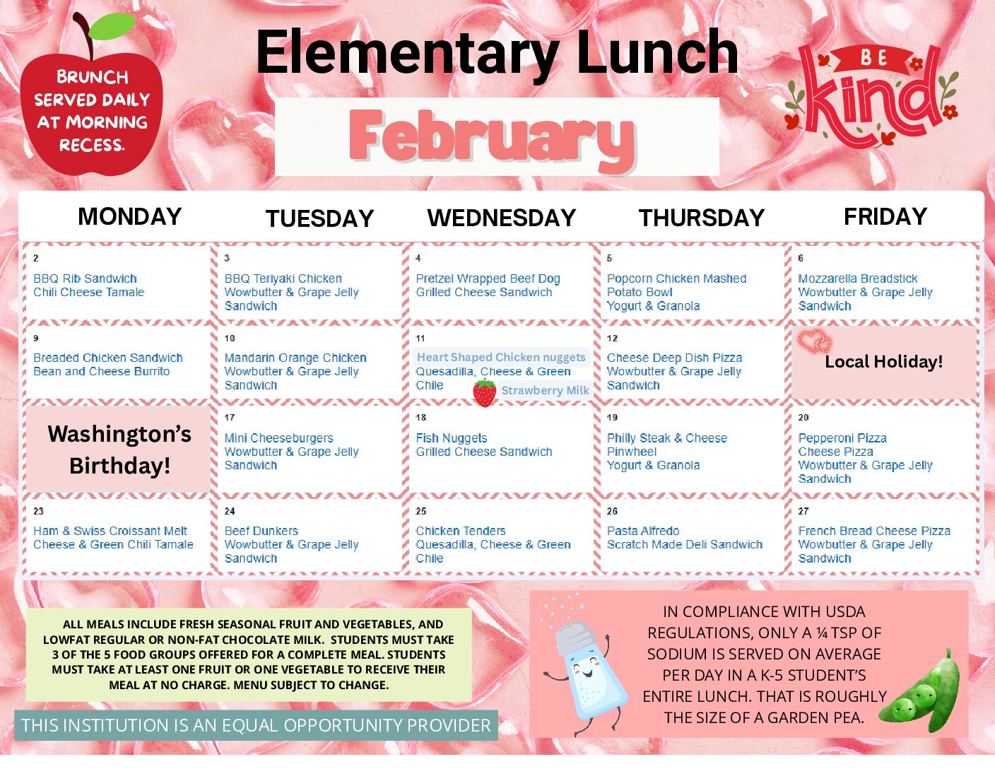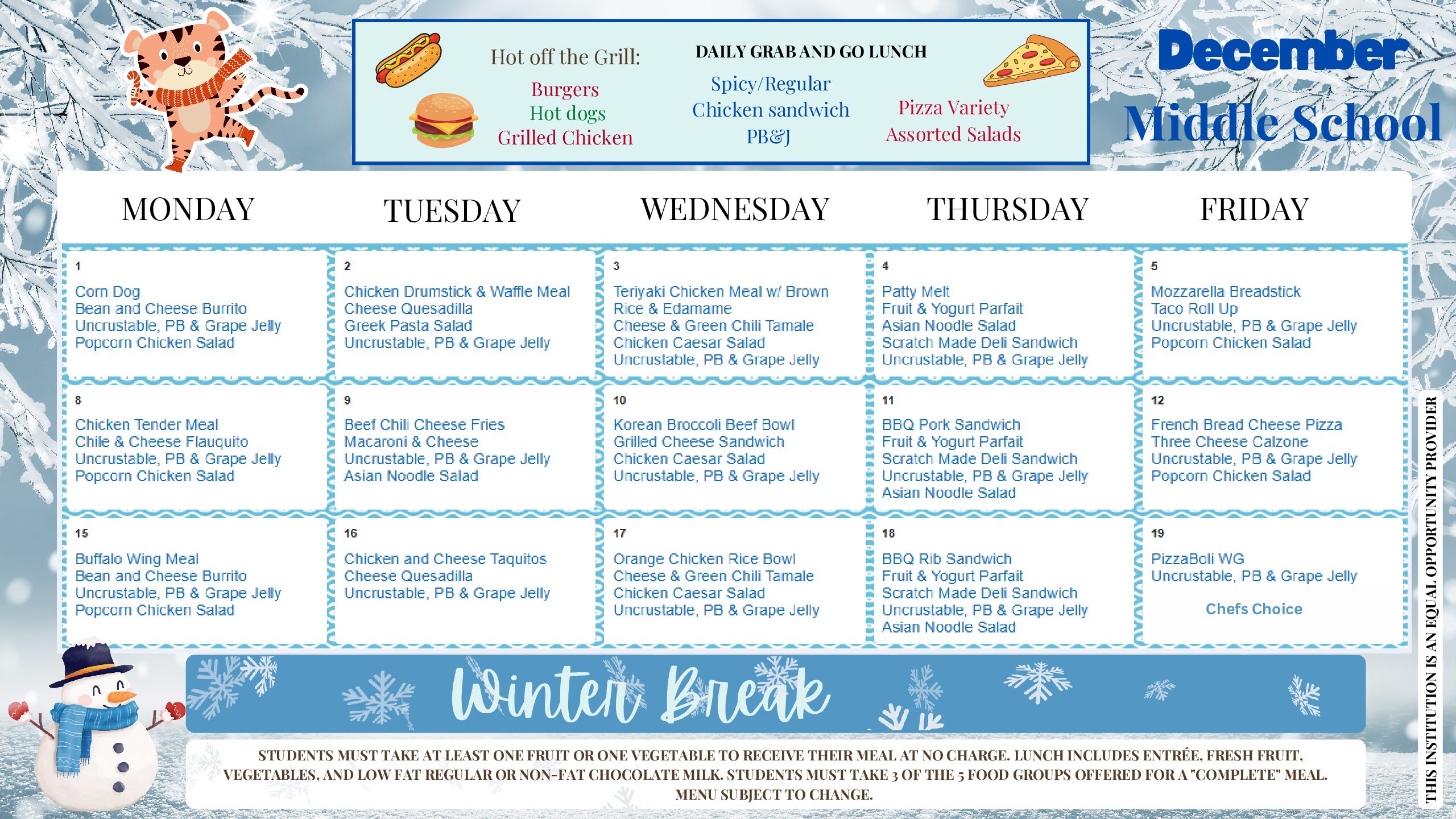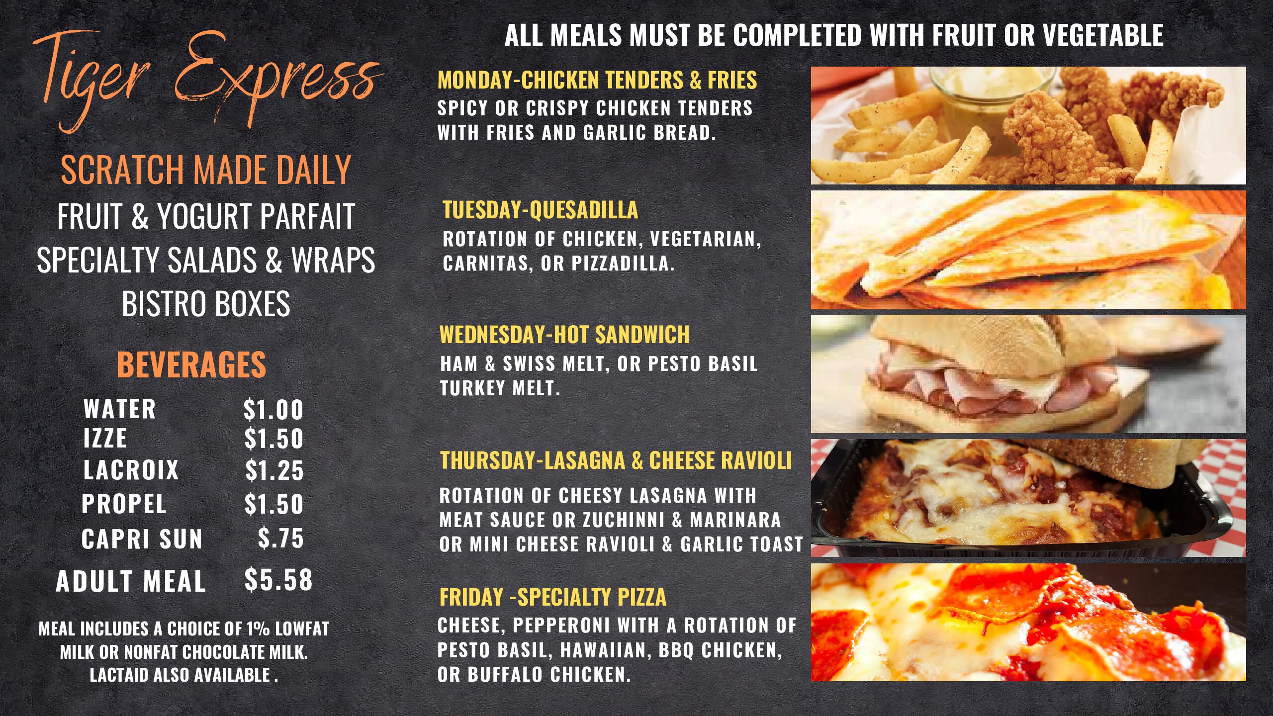 Getting kids to eat healthy is our #1 Job! We work hard to build menus that meet all the standards of the USDA School meal programs. We believe that we can combine well balanced nutrition with tasty foods that your child will want to eat. We take pride in presenting a variety of choices for every taste and many dietary needs. A healthy body supports healthy learning and we are dedicated to building strong minds and strong bodies!